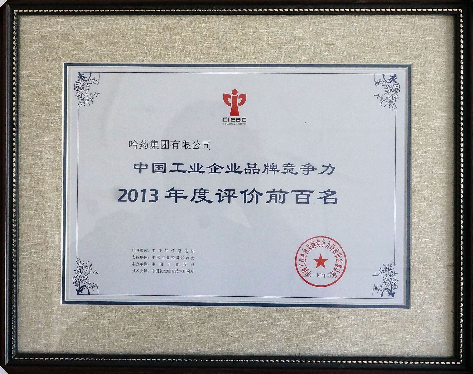 PG电子官网集团荣获“中国工业企业品牌竞争力2013年度评价前百名”荣誉称号