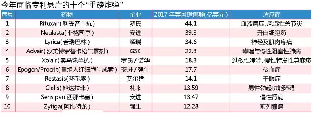 其中,2017年销售额排名前十的产品均为“重磅炸弹”,其在美国市场的销售总额接近230亿美元。