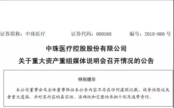 6月7日,中珠医疗发布关于重大资产重组媒体说明会召开情况的公告。