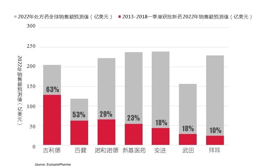 吉利德(Gilead)的新药数量是生物技术公司中的佼佼者,2013-2018年第一季度有9个新分子实体获批,与一些比较成功的大型制药企业势均力敌。在吉利德抗丙肝药物销售下滑的情况下,这一波新药对其无疑是好消息。