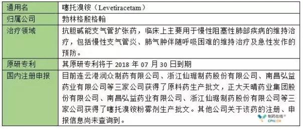 该药2017年的全球销售额高达50亿美元,其专利保护将于2018年12月30日到期,具体相关情况见下表:
