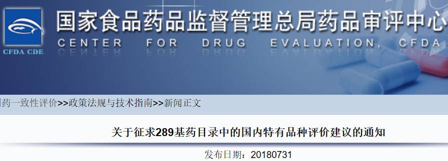 7月31日,国家药监局药品审评中心发布《关于征求289基药目录中的国内特有品种评价建议的通知》(以下简称《通知》)。