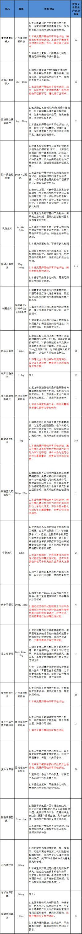 此次对22个药品的一致性评价,做出了建议。对13个药品做出了“无需开展临床有效性试验。”的建议,对一个药品“不建议企业对该品种开展再评价。如企业不愿放弃,需提供充分的临床有效性证据”涉及61家企业。如下图: