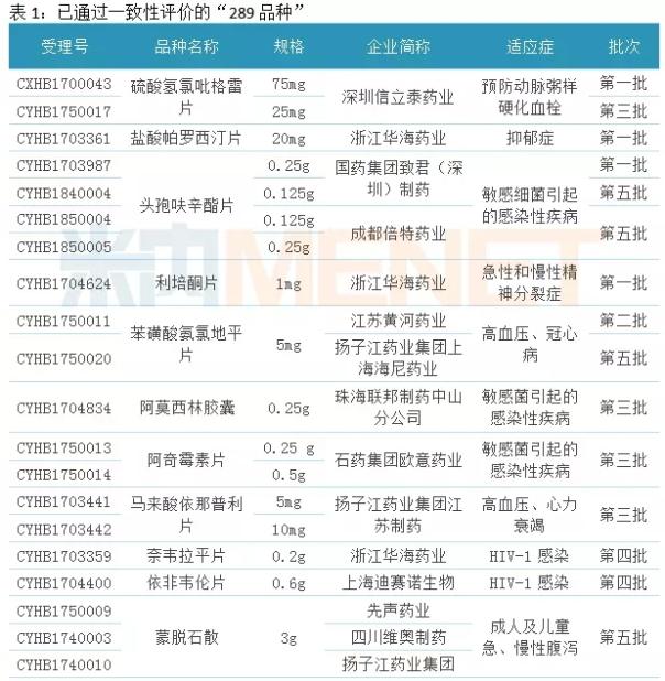 从通过“289品种”一致性评价的企业看,浙江华海药业、扬子江药业集团及子公司均有3个品种通过一致性评价,石药集团及子公司有2个品种通过一致性评价。