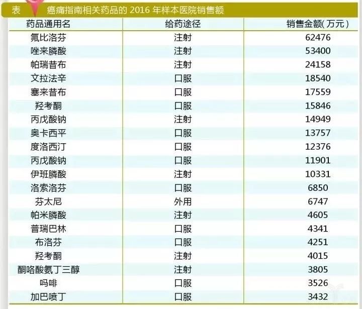2016年样本医院销售额