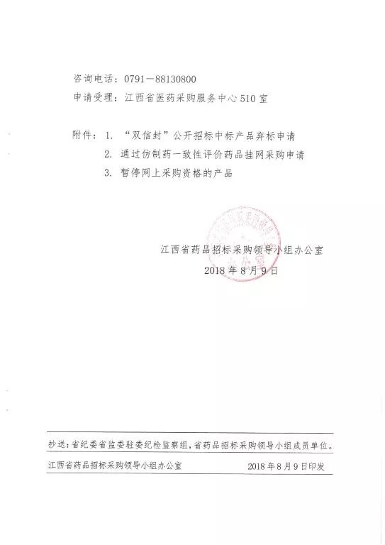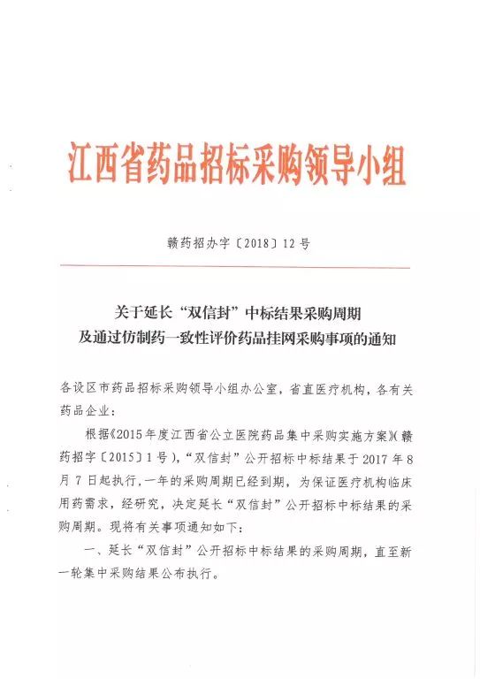 近日,江西省药品招采领导小组办公室发文: