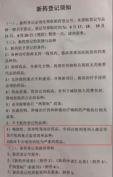 根据通告,辅助性、营养性等高价药品、中药注射剂等列入南京市医疗机构重点监管清单品种以及临床不合理用药较为严重的药品,均不予新药登记。