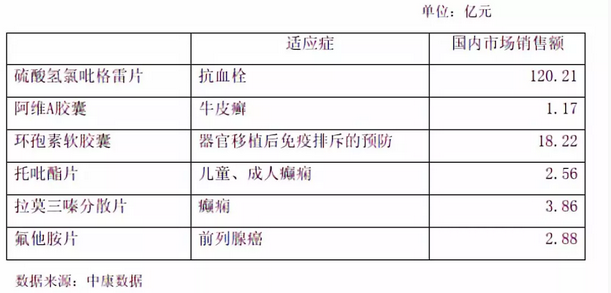 上述产品均属于临床品种,2017年国内销售总额为 148.9 亿元人民币。