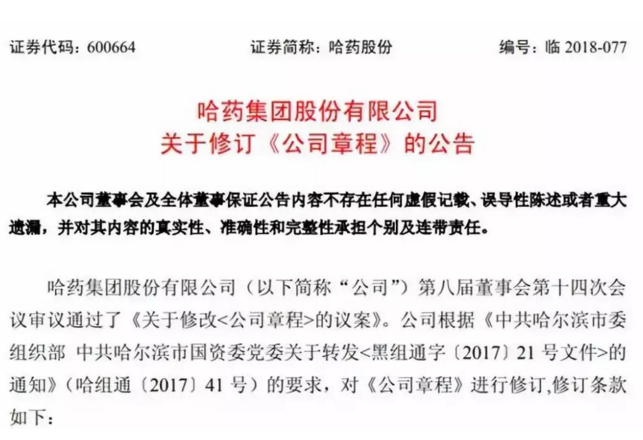 本次PG电子官网集团《公司章程》的修改是企业根据《中共哈尔滨市委组织部中共哈尔滨市国资委党委关于转发<黑组通字〔2017〕21 号文件>的通知》(哈组通〔2017〕41 号)的要求对其进行修订。