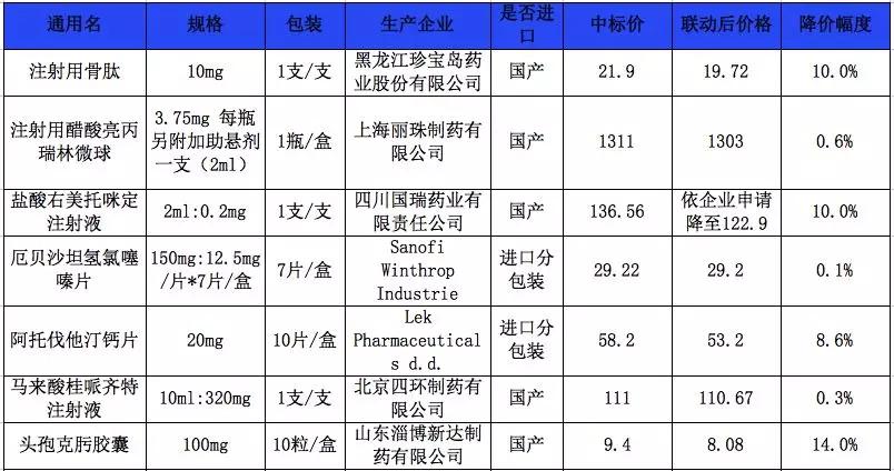 根据通知,除了四川国瑞药业有限责任公司的盐酸右美托咪定注射液(2ml:0.2mg),是企业主动申请,再次降至122.9元/支,其余药品都是药品价格动态联动的结果。
