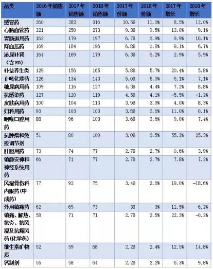值得一提的是,随着新药上市的加快和处方药院外销售的提速,零售渠道新特药蓬勃发展,特别是免疫调节和抗肿瘤药,2018年在药店市场继续保持超过25%的增长,为行业带来一针强心剂。