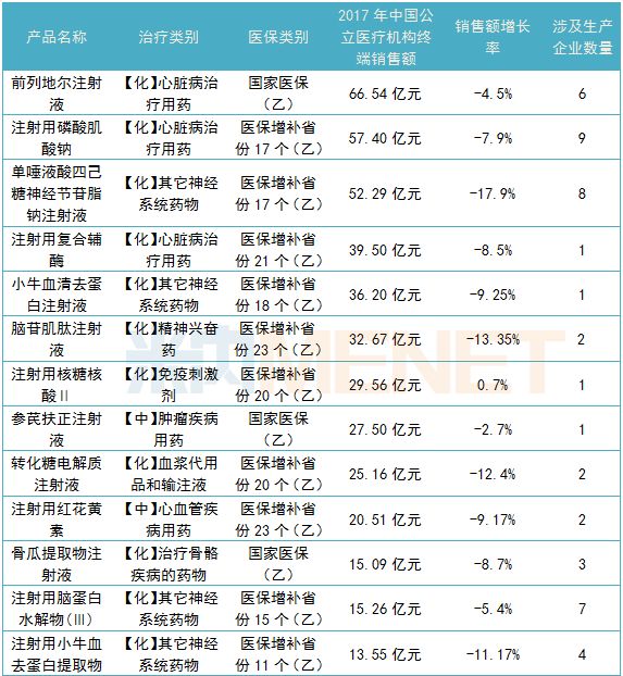 医药网2月27日讯 2月24日,央视焦点访谈播放了《辅助用药,从滥用到规矩用》专题,提到安徽是国家深化医改综合试点省之一,2015年12月29日发布了《关于成立安徽省县级公立医院临床路径管理指导中心的通知》和相关实施方案,方案强调要在临床路径的管理中“加强辅助用药管理”,规定21种辅助药物不能纳入临床路径表单。据米内网数据显示,这21个辅助用药中有16个在2017年中国城市公立医院、县级公立医院、城市社区中心及乡镇卫生院(简称中国公立医疗机构)终端销售额超过10亿元,其中前列地尔注射液、注射用磷酸肌酸钠、单唾液酸四己糖神经节苷脂钠注射液、注射用复合辅酶、小牛血清去蛋白注射液以及脑苷肌肽注射液的公立医疗机构终端销售额更是高达30亿元以上。