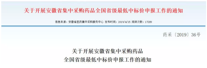 安徽市场新规:按全国省级最低中标价申报!