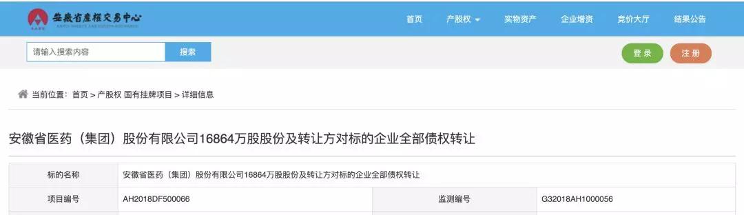 赛柏蓝查询安徽省产权交易中心网站,得到了安徽省医药集团挂牌转让的详细信息。