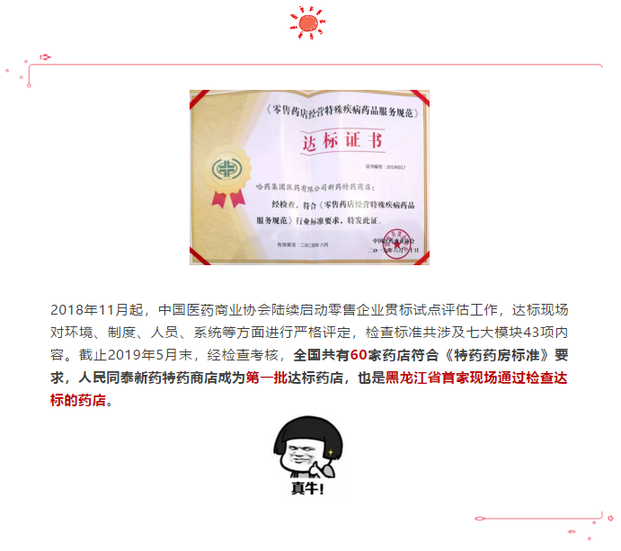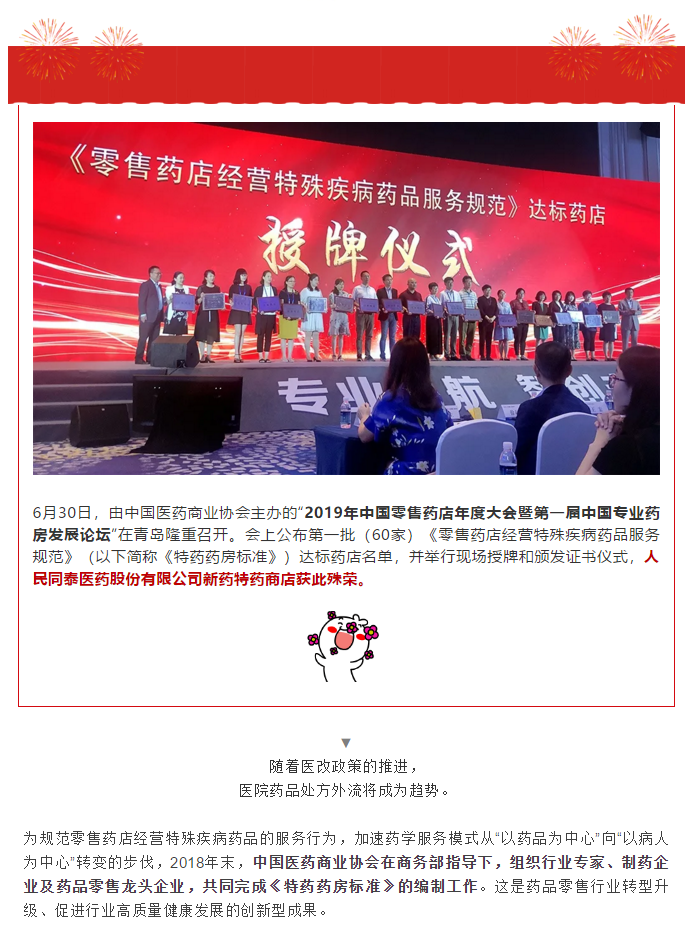 喜报!人民同泰新药特药商店成为第一批通过国家《零售药店经营特殊疾病药品服务规范》的达标药店-新媒体动态-PG电子官网官方网站
