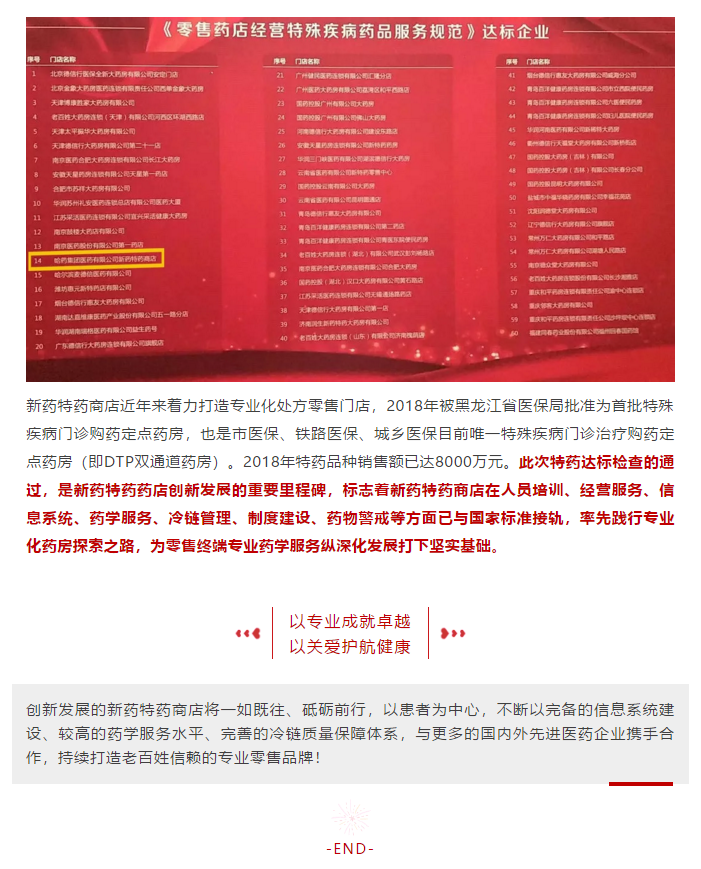 喜报!人民同泰新药特药商店成为第一批通过国家《零售药店经营特殊疾病药品服务规范》的达标药店