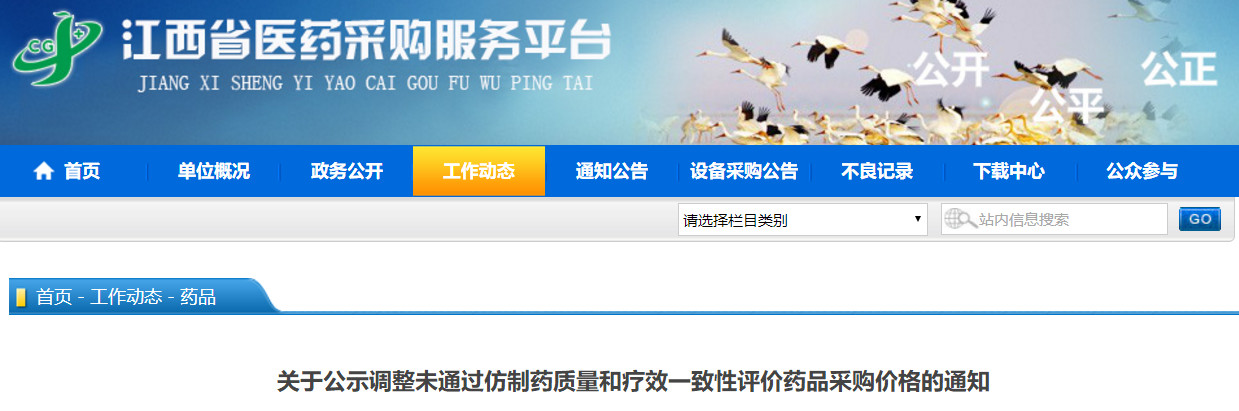 7月13日,江西省医药采购服务中心发布《关于公示调整未通过仿制药质量和疗效一致性评价药品采购价格的通知》。