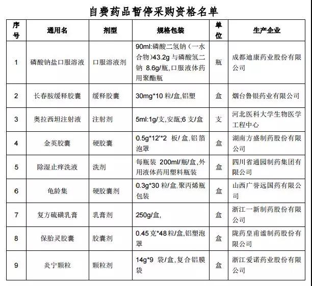 通知各医疗机构和相关药企,药品生产企业,根据相关文件规定暂停(2019年第一期)部分不符合自费药品挂网相关规定药品的挂网采购资格一年。上海表示,此通知自2019年7月22日起执行。