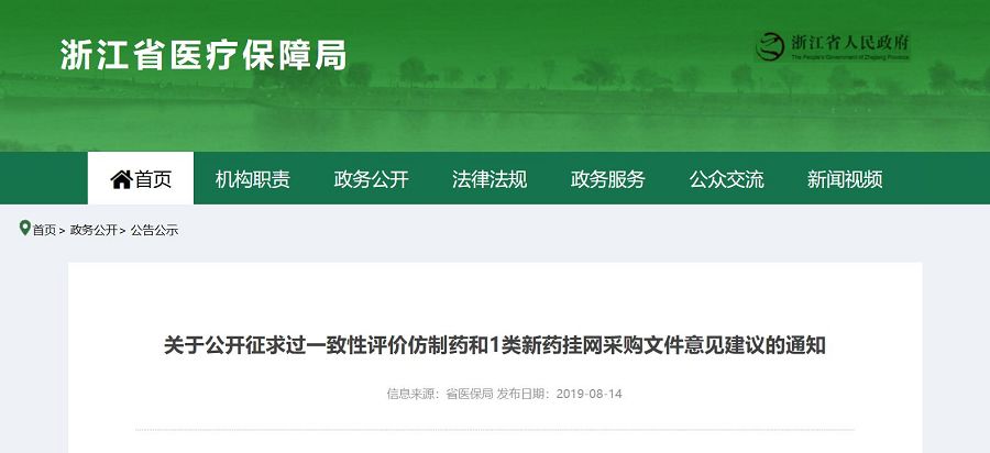 8月14日,浙江省医疗保障局官网发布《关于公开征求过一致性评价仿制药和1类新药挂网采购文件意见建议的通知》(简称《征求意见稿》),旨在进一步做好通过质量和疗效一致性评价仿制药和1类新药挂网采购工作。《征求意见稿》不仅提出了具体的针对过一致性评价仿制药的招采政策,对于1类新药明确直接挂网,引发行业重点关注。