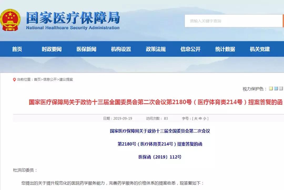 医药网9月20日讯 9月19日,国家医保局官网发布《关于政协十三届全国委员会第二次会议第2180号(医疗体育类214号)提案答复的函》,针对“建立合理的药学服务价格体系”一项建议,明确提出“将开展相关服务项目收费政策专题研究,探索适宜的收付费方式,激励药学人员在促进合理用药、减少资源浪费等方面发挥积极作用。”