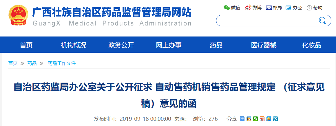 近日,广西壮族自治区药监局发布了《自动售药机销售药品管理规定(征求意见稿)》(以下简称《规定》)。