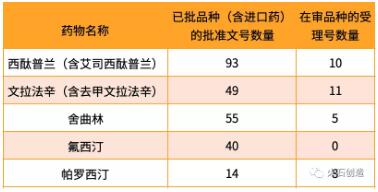 2019年,科伦药业和复星医药的艾司西酞普兰双双通过一致性评价;京新药业的舍曲林已于去年底向CDE申报一致性评价;康弘药业的文拉法辛一致性评价工作也在顺利推进。