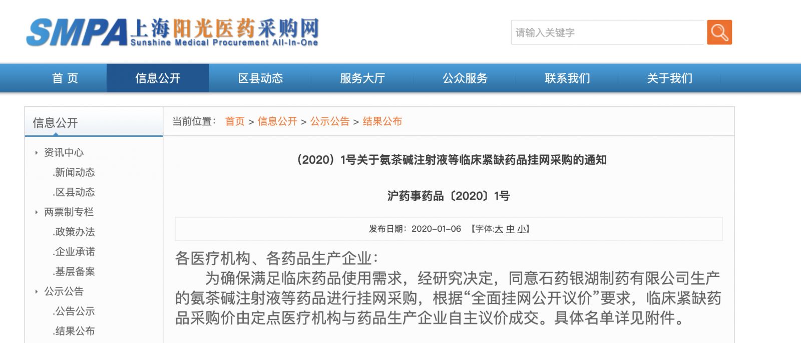 近日(1月6日),上海阳光医药采购网公布文件《关于氨茶碱注射液等临床紧缺药品挂网采购的通知》。
