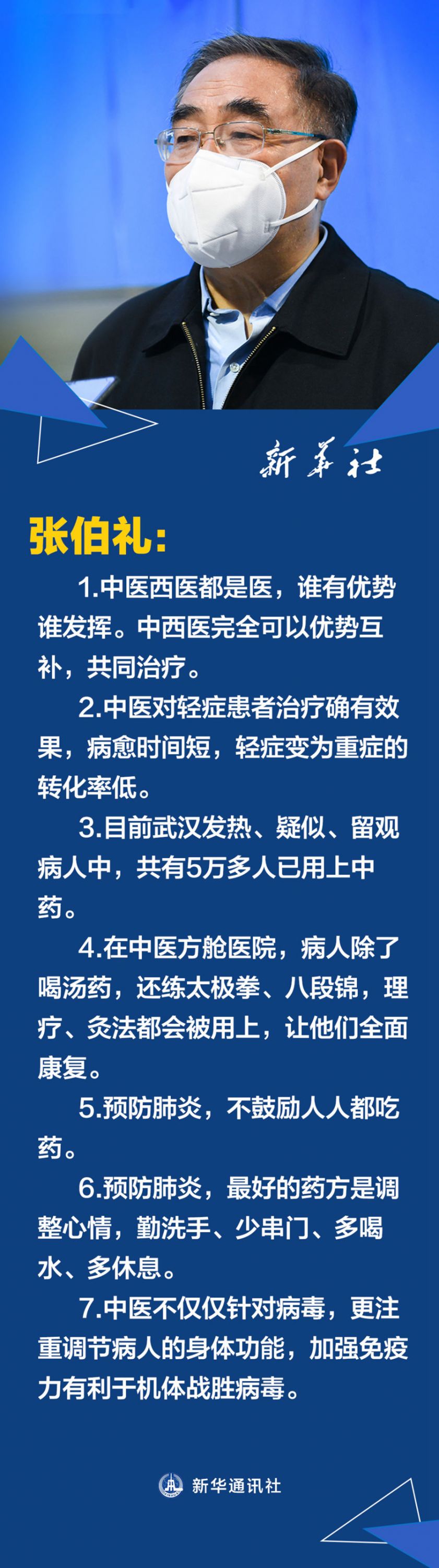 “我们还是强调中医西医都是医,谁有优势谁发挥。”张伯礼直言,中医和西医都各有优点,可以优势互补,共同治疗,“根据各自症状,优势,更好地科学调配床位资源,保证各类病人都能得到应有的救治”。