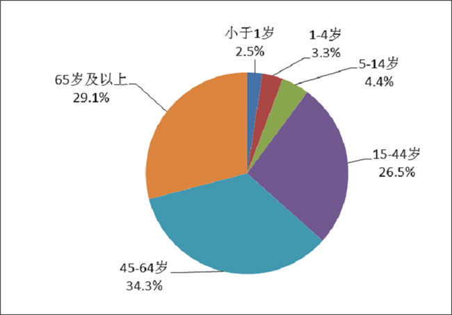2019年药品不良反应/事件报告中,男女患者比为0.86:1,女性略多于男性。14岁以下儿童患者占10.2%;65岁及以上老年患者占29.1%(图5)。
