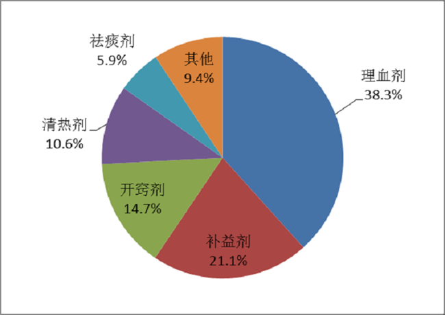 按照药品类别统计,化学药品占86.6%,中药占12.6%,生物制品占0.8%。化学药品排名居前的药品类别是抗感染药、心血管系统用药、肿瘤用药、神经系统用药、电解质、酸碱平衡及营养药;中药排名居前的药品类别是理血剂、补益剂、祛湿剂、开窍剂、清热剂。