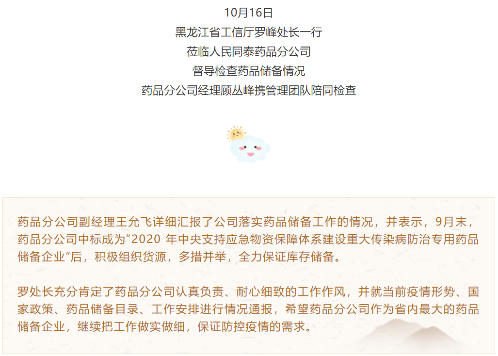 黑龙江省工信厅领导莅临药品分公司督导检查药品储备情况-新媒体动态-PG电子APP官方网站