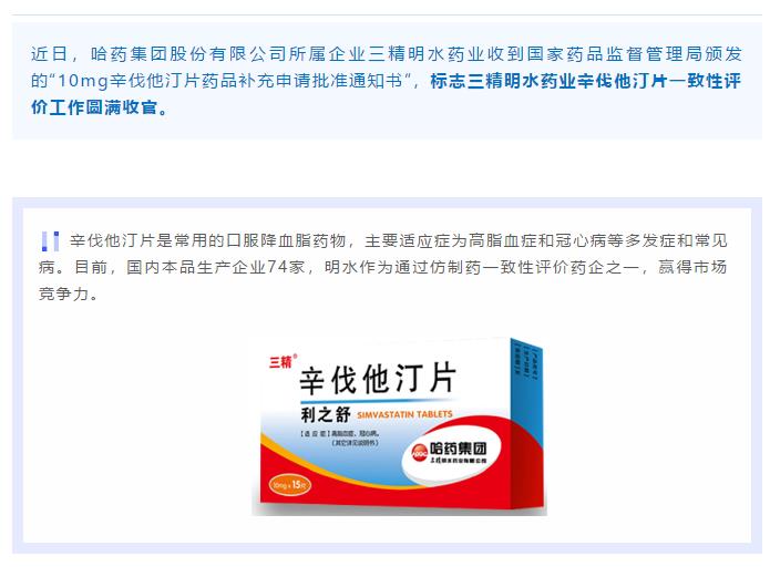 喜报!三精明水药业辛伐他汀片通过仿制药一致性评价